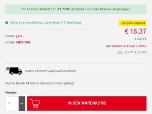Der Versand wie auch eine eventuelle Retoure erfolgt kostenlos.