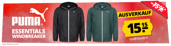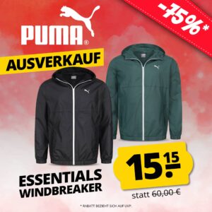 Neuer Deal von SportSpar, dort bekommt ihr die PUMA ESS Essentials Solid Herren Windbreaker (verschiedene Farben, S-XL) für 20,10€ (Vergleichspreis ~30€) Ersparnis ~10€