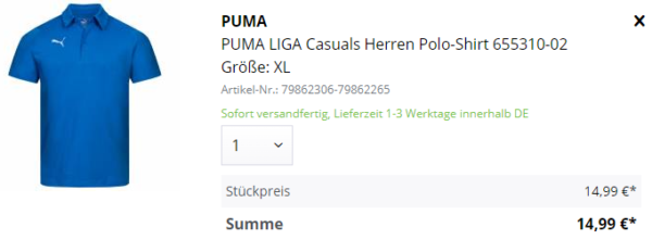Denn bei SportSpar bekommt man das Puma Liga Casuals Polo-Shirt (655310-02) für 18,94€ (Vergleichspreis: ~23€) Ersparnis ~4€