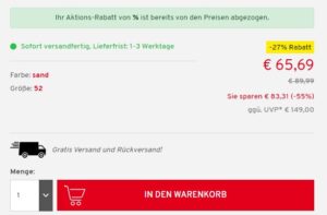 Der Versand wie auch eine eventuelle Retoure erfolgt kostenlos.