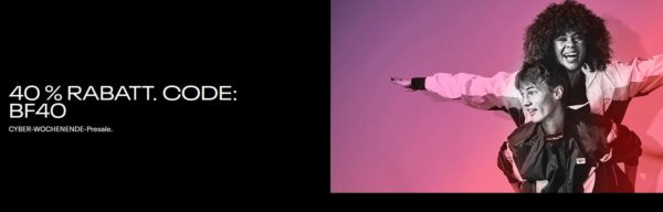 Bei Reebok ist ein Cyber-Wochenende-Presale gestartet, bei dem ihr schon jetzt gute 40% Rabatt auf ausgewählte Artikel erhalten könnt.