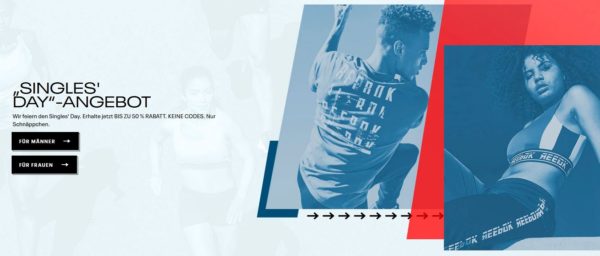 Bei Reebok gibt es jetzt schon zum Singles‘ Day bis zu 50% Rabatt auf ausgewählte Artikel.