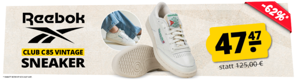 Jetzt mal wieder ein Deal für die Damen, bei SportSpar bekommt ihr die Reebok CLUB C 85 VINTAGE Damen Leder Sneaker (35,5 – 42,5) für 52,42€ (Vergleichspreis: ~71€) Erparnis ~19€
