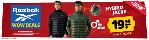 Zum Wochenstart bekommt ihr bei SportSpar die Reebok Heywood Hybrid Herren Jacke (verschiedene Farben) für 24,94€