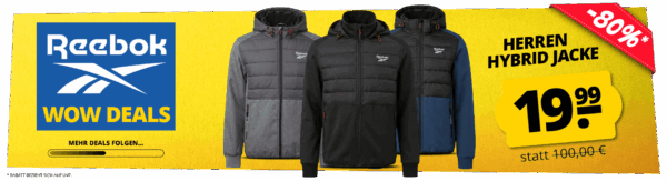 Bei SportSpar bekommt ihr zum Start in das Wochenende die Reebok Mixed Hybrid Herren Outdoor Jacke (verschiedene Farben) für 24,94€