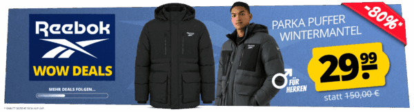 Für die kalten Tage bekommt ihr genau das Passende bei SportSpar, die Reebok Parka Puffer Herren Wintermantel (verschiedene Farben) für 34,94€
