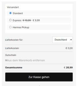 Die Lieferung erfolgt kostenlos, wenn ihr den genannten Gutschein verwendet