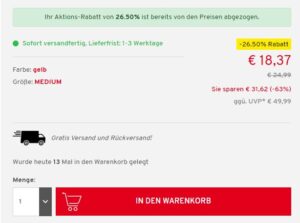 Der Versand wie auch eine eventuelle Retoure erfolgt kostenlos.