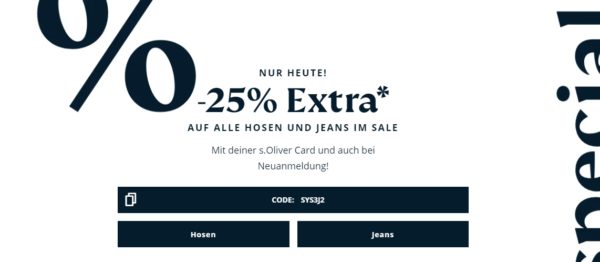 Denn bei s.Oliver bekommt man 25% Extra-Rabatt auf alle Hosen & Jeans im Sale im Online-Shop.