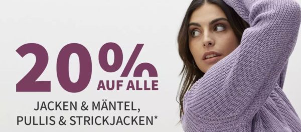 - 20% Rabatt auf Jacken, Mäntel, Pullover, Strickjacken