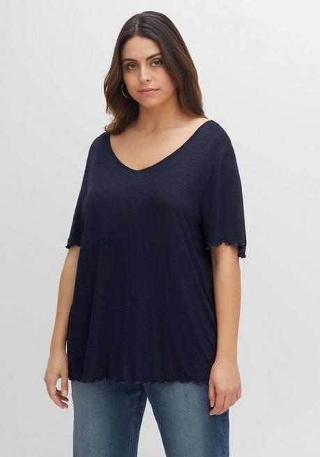 - T-Shirt mit V-Ausschnitt und Rollkanten für 13,49€ (Vergleichspreis: ~26€) Ersparnis ~13€