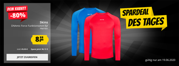 Bei SportSpar bekommt man das Skins DNAmic Force Funktionsshirt (DF00010059014) für 12,83€ (Vergleichspreis: ~21€) Ersparnis ~8€