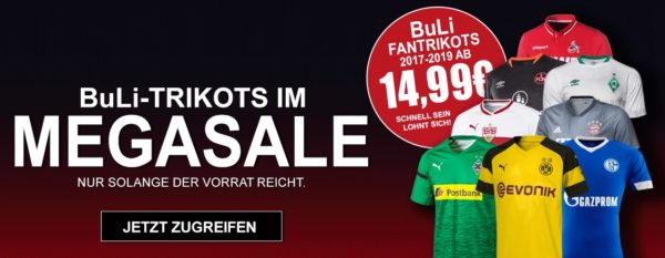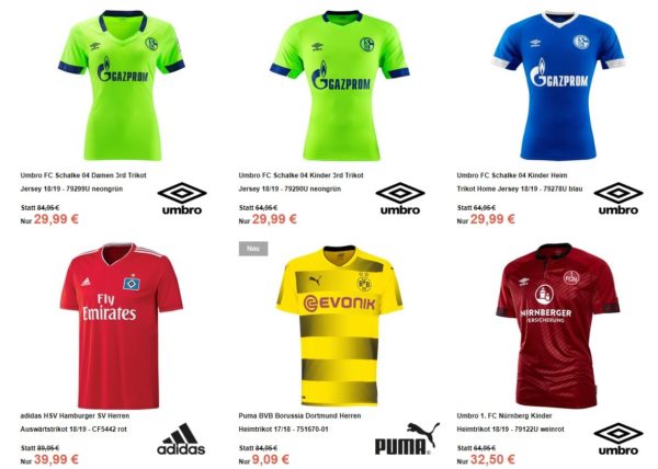 Bei Sport-1a ist gerade ein großer Trikotsale gestartet, bei denen ihr verschiedene Trikots stark reduziert bekommt, so z.B. das Schalke oder BVB Trikot für gerade mal 9,09€