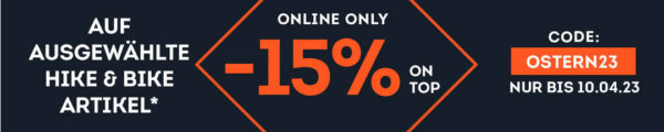 - 15% Rabatt auf ausgewählte Hike & Bike Artikel