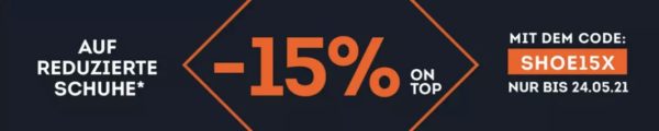 Bei SportScheck gibt es bis einschließlich 24. Mai 15% Rabatt auf reduzierte Schuhe. 🙂