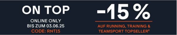 Bis einschließlich 10. Juni gibt es bei SportScheck 15% Rabatt auf Running, Teamsport Topseller