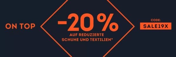 - 20% Extra-Rabatt auf bereits reduzierte Schuhe und Textilien