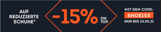 Gültig vom 20.05. – 24.05.2021 mit dem Gutscheincode SHOE15X