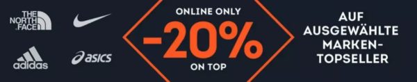 Im Online-Shop von SportScheck läuft gerade wieder mal 20% Rabatt auf ausgewählte Markentopseller!