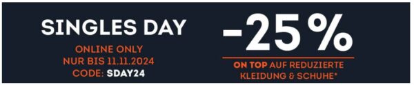 SportScheck spendiert euch zum Singles-Day 25% Rabatt on top auf reduzierte Kleidung & Schuhe*