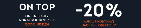 - Satte 20% Rabatt auf ausgewählte Jacken & Oberteile