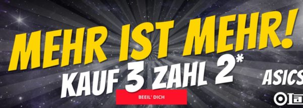 Neue Aktion bei SportSpar, dort bekommt ihr bis Freitag 11 Uhr eine 3 für 2 Aktion auf Asics, Jelex, Lambretta (nur für Sparclub-Mitglieder)