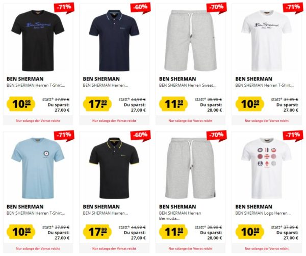 Bei SportSpar ist gerade ein großer Ben Sherman Sale mit Rabatten bis zu 74% Rabatt gestartet.