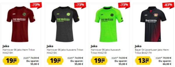 Bei SportSpar ist gerade der Bundesliga Sale von Jako gestartet, dort bekommt ihr z.B das Hannover 96 Trikot für 19,99€ + VSK.