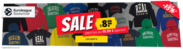 Bei SportSpar findet gerade ein Euroleague Basketball Sale statt. Mit dabei sind Shirts, Hoodies und Caps vieler Teams. 🙂