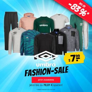 Bei SportSpar erhaltet ihr jetzt in einem neuen Sale zahlreiche Artikel des Herstellers „Umbro“ zu attraktiven Angebotspreisen.