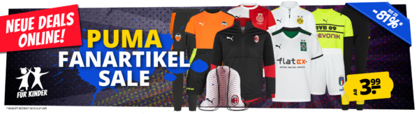 In einem weiteren PUMA Fanartikel Sale erhaltet ihr zahlreiche Neuheiten mit bis zu 81% Rabatt ab bereits 3,99€! 😎