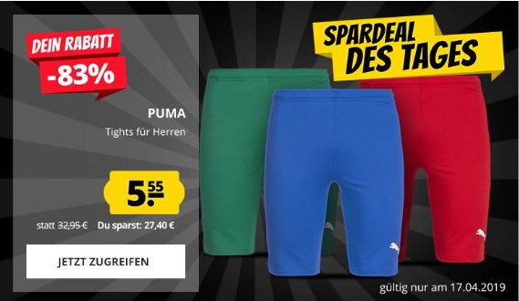 Bei SportSpar bekommt ihr heute als Spardeal des Tages PUMA Herren Short Tights Radlerhose 9,50€