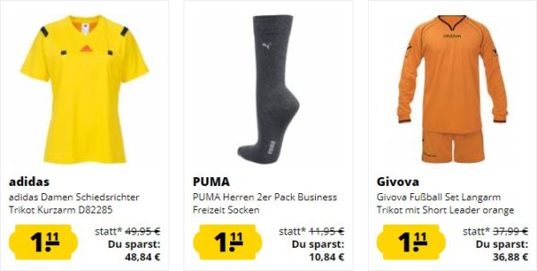Bei SportSpar erhaltet ihr nur heute als Spardeal des Tages verschiedene Artikel mit Randgrößen für je 1,11€. 🙂