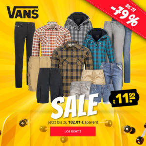 Bei SportSpar erhaltet ihr im Rahmen eines SALE der Marke „Vans“ Oberteile und Hosen zu reduzierten Preisen. Hier einige Beispiele: