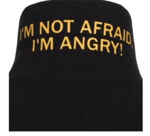 - „I´m not afraid. I´m angry“ Schriftzug unter dem Kragen