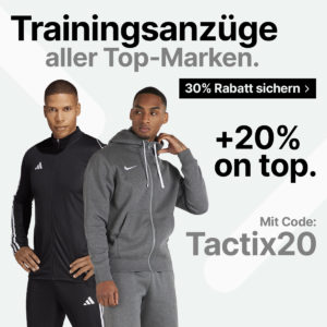 Bei Tactix erhaltet ihr bis einschließlich 5. März 30% Rabatt auf Trainingsanzüge + 20% Extra-Rabatt durch einen Gutschein-Code!