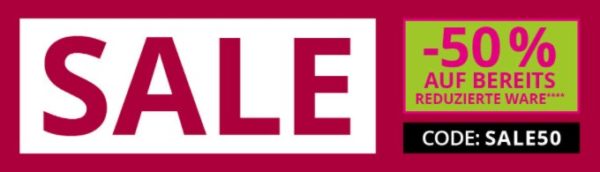 - 50% Rabatt auf alles, auch auf bereits reduzierte Artikel