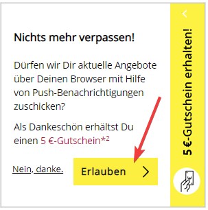 - 5€ Gutscheincode für Push-Benachrichtigung