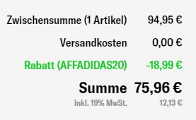Gutscheincode: AFFADIDAS20 | Wendet diesen Gutscheincode im Warenkorb an und erhaltet den Rabatt.
