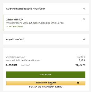 Nutzt den Gutschein 2312WINTER20 und schon bekommt ihr den Rabatt.