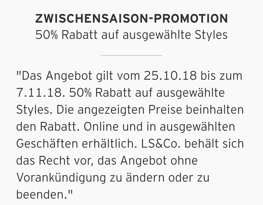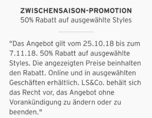 Im Onlineshop von Levi´s bekommt ihr gerade 50% Rabatt auf ausgewählte Artikel