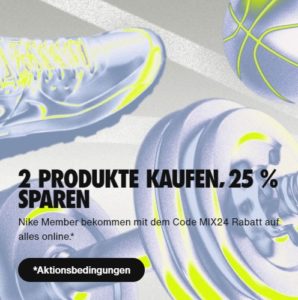 Schöne Aktion seitens Nike, dort bekommt ihr als Nike-Member (kostenlos) 2 Produkte kaufen & 25% Rabatt sichern (über 6.000 Artikel)
