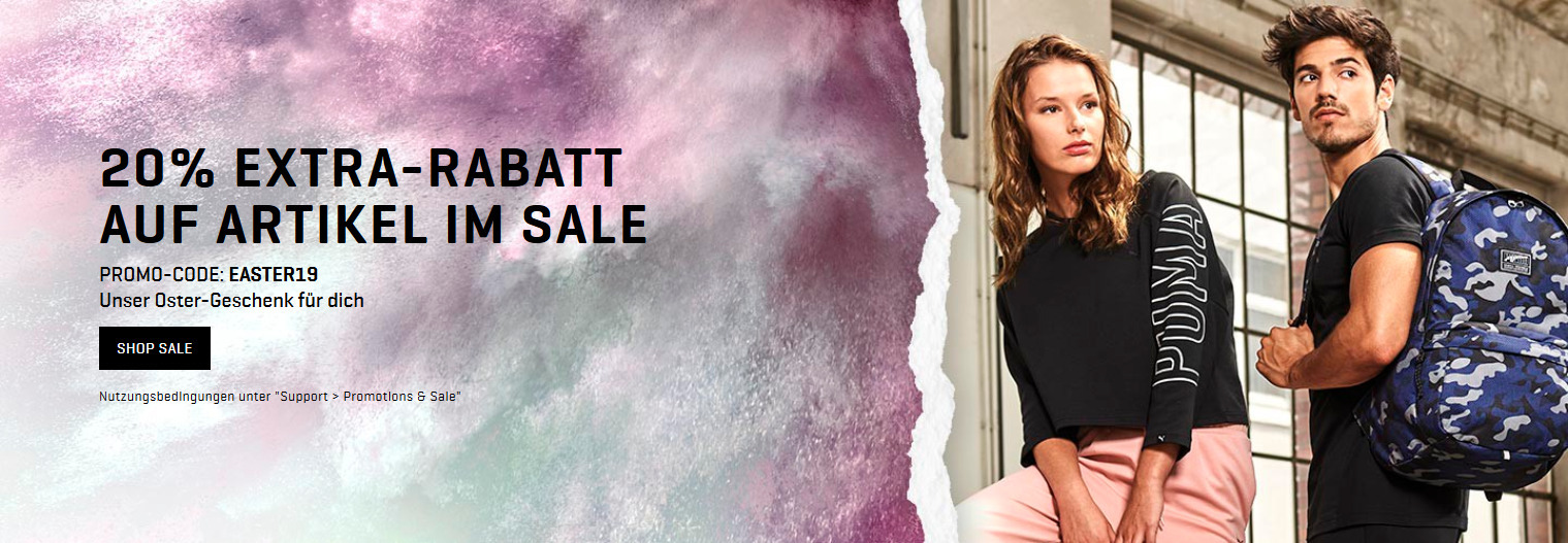 Endlich wieder eine tolle Aktion bei Puma! Ihr bekommt derzeit bis zu 50% Rabatt im Sale und oben drauf noch einmal satte 20% Extra-Rabatt!