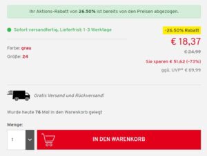 Der Versand wie auch eine eventuelle Retoure erfolgt kostenlos.