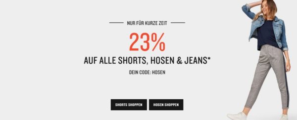 Im Onlineshop von Tom Tailor bekommt ihr gerade 23% Rabatt auf alle Shorts, Hosen & Jeans
