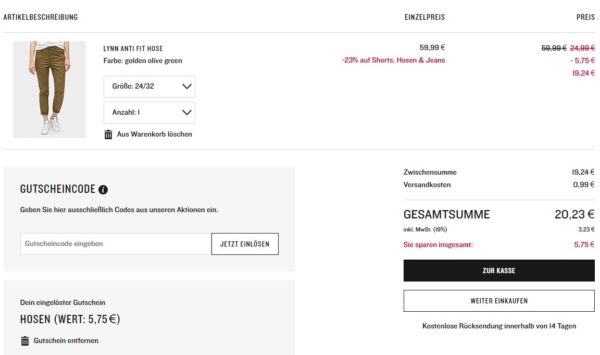 Um den Rabatt zu bekommen, nutzt bitte den Gutschein HOSEN
