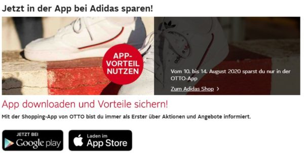 Mal wieder ein OTTO-Deal, diesmal erhaltet ihr exklusiv über die OTTO-App 20% Rabatt auf adidas Artikel.