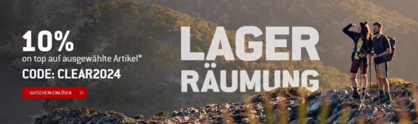 Schönes Angebot! Bei Bergfreunde ist eine neue Aktion gestartet, diesmal bekommt ihr im Rahmen der Lagerräumung 10% Extra-Rabatt auf ausgewählte Artikel.