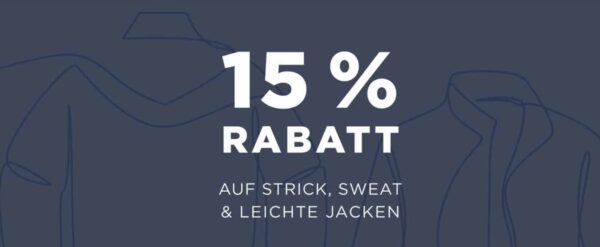 - 15% Rabatt auf Strick, Sweat und leichte Jacken
