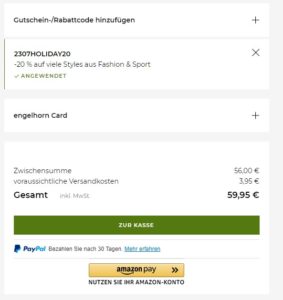 Bei engelhorn bekommt ihr gerade 20% Extra-Rabatt auf viele Fashion & Sport-Artikel